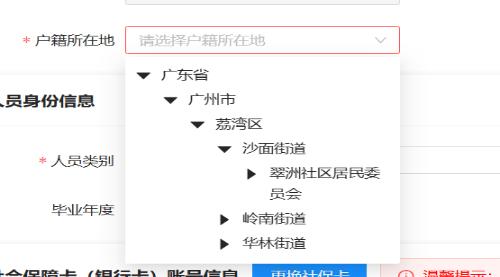 7.戶(hù)籍所在地:下拉框選擇,務(wù)必按照戶(hù)口本首頁(yè)信息填寫(xiě),格式為xx省xx市xx區(qū)/縣