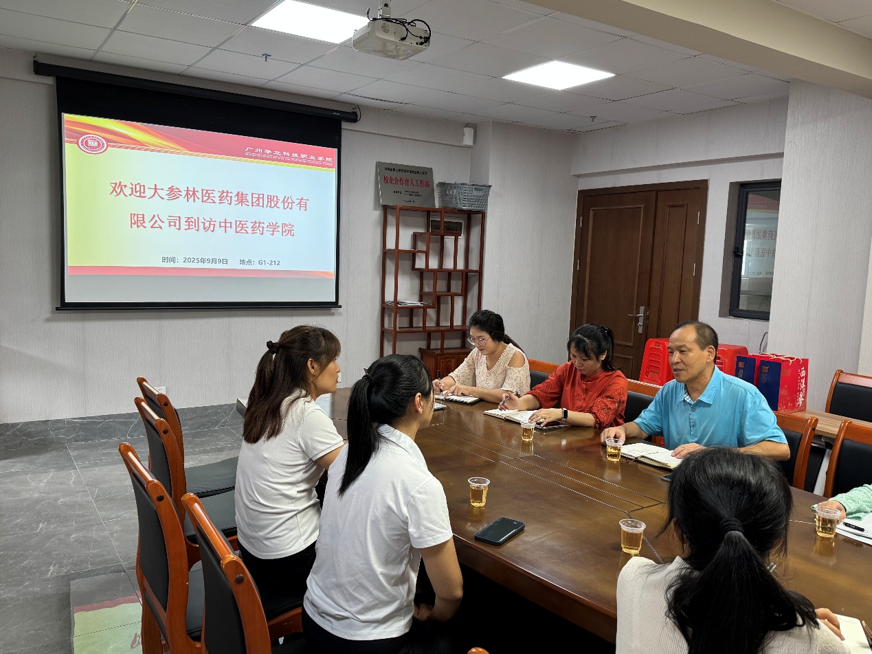 2025年9月9日,大參林醫(yī)藥集團(tuán)股份有限公司代表一行到訪中醫(yī)藥學(xué)院,雙方就人才培養(yǎng)、實(shí)習(xí)就業(yè)、科研項(xiàng)目、學(xué)生競(jìng)賽等方面展開(kāi)了深入交流與探討。