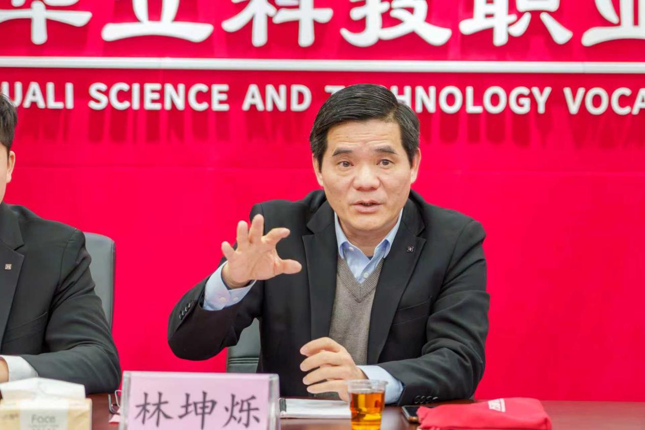 萬(wàn)家粵超市總經(jīng)理林坤爍高度認(rèn)可華立職院的辦學(xué)成果與人才培養(yǎng)質(zhì)量。他表示,萬(wàn)家粵超市自2016年進(jìn)駐云浮以來(lái),已擁有11家分店、200余名員工及相關(guān)配套設(shè)施。此次合作旨在依托學(xué)校資源優(yōu)勢(shì),彌補(bǔ)企業(yè)技術(shù)短板,共同培養(yǎng)高素質(zhì)人才,推動(dòng)雙方協(xié)同發(fā)展。
