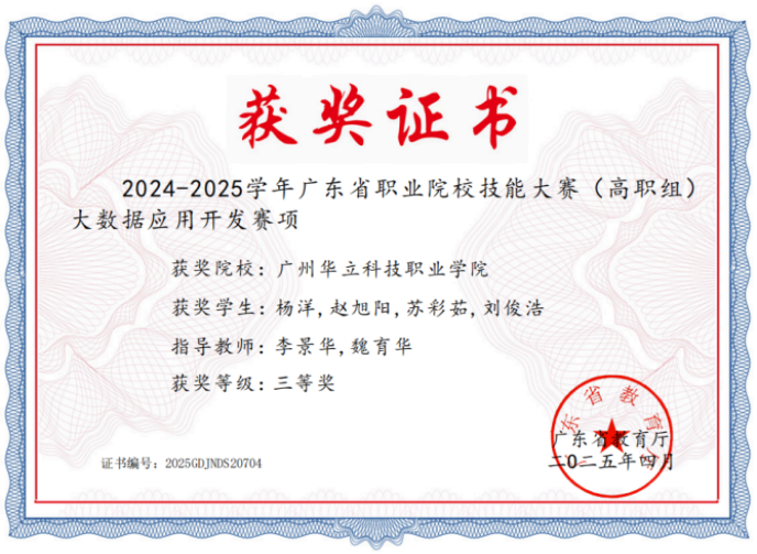 (圖12 大數(shù)據(jù)應(yīng)用開(kāi)發(fā)(省賽)三等獎(jiǎng)) |