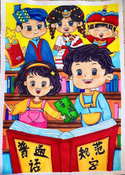 二等獎 | 24美術(shù)1班 陳偉鑫 | 《普通話傳情,規(guī)范字達意,民族共奮進》 |