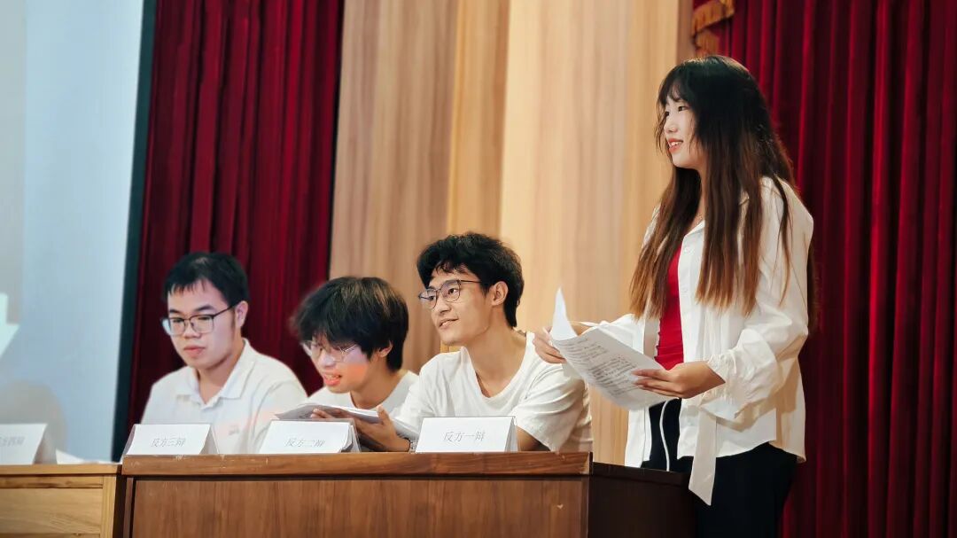 辯論賽場,"聲動華夏·辯響未來"的思辨之火點燃了整個夜晚。圍繞“‘梗文化’是否促進語言的規(guī)范發(fā)展”這個議題,辯手們妙語連珠,觀點交鋒,為我們呈現(xiàn)了一場思想盛宴。語言的魅力在辯論中綻放,思維的火花在交流中碰撞。