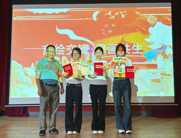 秋韻初染的華立校園,一場語言與繪畫交融的特色活動圓滿落下帷幕。值此第28屆全國推廣普通話宣傳周之際,我校于圖書館小禮堂舉辦“言繪交鋒·思畫共生”校決賽,比賽現(xiàn)場燈火璀璨,筆墨與思想交匯,色彩與鄉(xiāng)音交融。本次比賽由教育學(xué)院邱鈞明、譚燕勤、張志杭、欒瑞林,學(xué)校團委雷洋五位老師擔(dān)任評委,與現(xiàn)場師生共同見證這場國家通用語言文字的絢麗之旅。