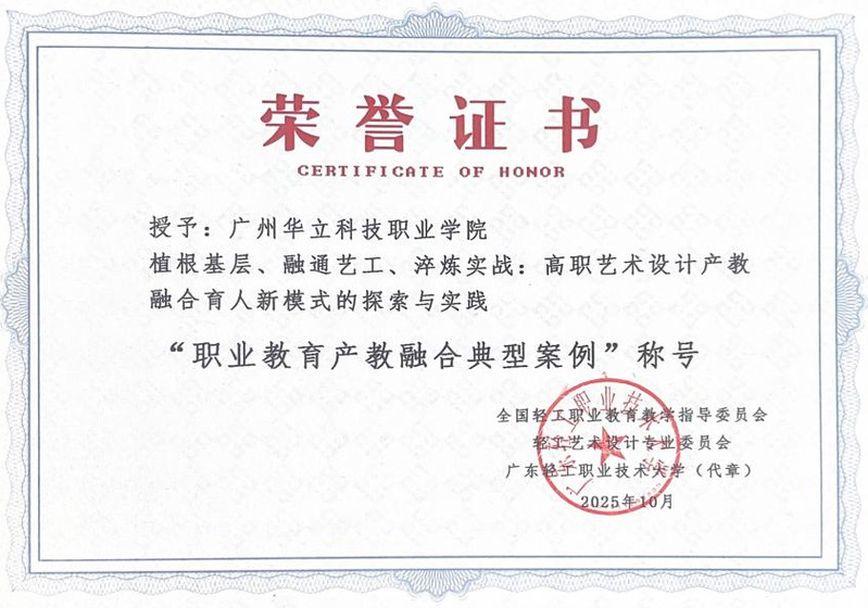 此次研討會是華立職院在藝術設計教育創(chuàng)新和產(chǎn)教融合方面邁出的重要一步。經(jīng)全國輕工藝術設計專業(yè)委員會和共同體專家評審:由馬俊、肖釗俊、沈泓睿、王渡讀團隊制作的紀錄片榮獲中國大學生廣告藝術學院獎2025年“筑夢產(chǎn)教·校長印記”賽項“金獎”;華立職院產(chǎn)教融合案例“植根基層、融通藝工、淬煉實戰(zhàn):高職藝術設計產(chǎn)教融合育人新模式的探索與實踐”榮獲“產(chǎn)教融合典型案例”;華立職院藝術與傳媒學院黨總支書記陳改梅、就業(yè)主任黎映如獲聘“全國輕工藝術設計專委會智庫專家”;華立職院“冠岳宅吉美項目班”產(chǎn)教融合案例,正式載入《2025年中國廣告年鑒》,以彰顯其行業(yè)價值與引領意義;學校獲評創(chuàng)意星大學生實踐人才培育工程-廣州華立科技職業(yè)學院網(wǎng)易傳媒新媒體人才孵化計劃實訓單位。