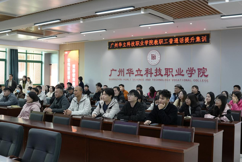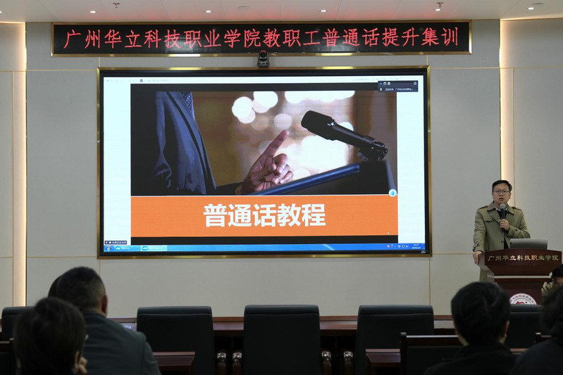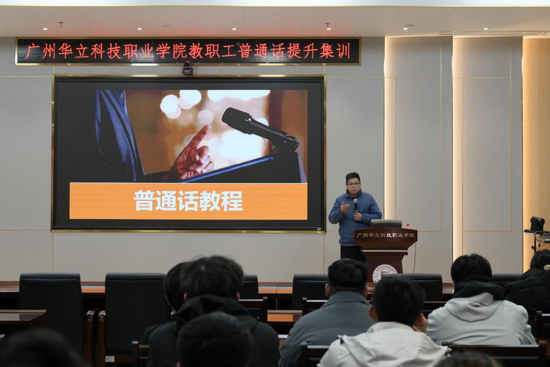 為提升教職工普通話應(yīng)用水平,強(qiáng)化教育教學(xué)語言規(guī)范,近日,廣州華立科技職業(yè)學(xué)院開展教職工普通話提升集訓(xùn)。學(xué)校人事處處長鐘文浩、藝術(shù)與傳媒學(xué)院院長朱君到場參會(huì),全校各部門教職工積極參訓(xùn)。