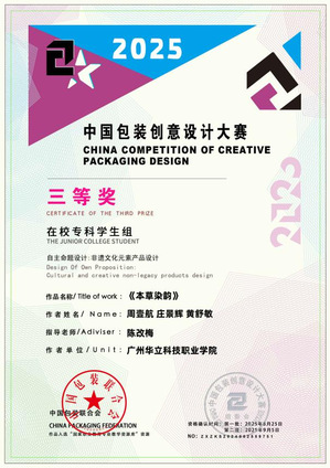 八、2025年8月,中國包裝創(chuàng)意設(shè)計(jì)大賽是由中國包裝聯(lián)合會主辦的國家級權(quán)威賽事,涵蓋工業(yè)生產(chǎn)、行業(yè)標(biāo)準(zhǔn)、包裝教育、智能制造與先進(jìn)設(shè)計(jì)等多個(gè)領(lǐng)域,面向全球設(shè)計(jì)愛好者及院校師生,已成為我國包裝與設(shè)計(jì)教育界具有廣泛影響力的專業(yè)競賽平臺。大賽優(yōu)秀作品亦納入教育部國家職業(yè)教育專業(yè)教學(xué)資源庫建設(shè)。2025中國包裝創(chuàng)意設(shè)計(jì)大賽,藝術(shù)與傳媒學(xué)院學(xué)生作品共斬獲國家級“三等獎”5項(xiàng)、“優(yōu)秀獎”6項(xiàng),充分展現(xiàn)了藝術(shù)與傳媒學(xué)院在設(shè)計(jì)教育與創(chuàng)新實(shí)踐方面的扎實(shí)成效。