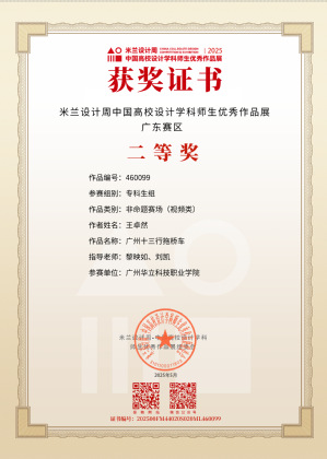 三、2025年5月,“米蘭設(shè)計(jì)周·中國高校設(shè)計(jì)學(xué)科師生優(yōu)秀作品展”由中國教育國際交流協(xié)會、中國高等教育學(xué)會聯(lián)合主辦,是教育部《全國普通高校學(xué)科競賽排行榜》重點(diǎn)賽事之一。賽事吸引了全國近千所高校參與,賽事旨在搭建國際化交流平臺,推動設(shè)計(jì)學(xué)科教學(xué)與實(shí)踐的深度融合,助力中國設(shè)計(jì)走向世界。在第九屆“米蘭設(shè)計(jì)周·中國高校設(shè)計(jì)學(xué)科師生優(yōu)秀作品展”藝術(shù)與傳媒學(xué)院師生榮獲“二等獎”1項(xiàng)、“三等獎”7項(xiàng),充分展現(xiàn)了藝傳學(xué)院在設(shè)計(jì)教育領(lǐng)域“以賽促教、以文化人”的育人成果與師生團(tuán)隊(duì)的卓越風(fēng)采。