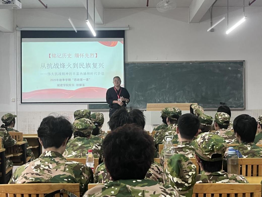 2025年10月28日,城建院院長徐耀鑒在第二教學(xué)樓305教室以“從抗戰(zhàn)烽火到民族復(fù)興”為主題,為25級(jí)新生講授新學(xué)期“思政第一課”,帶領(lǐng)新生學(xué)子回望抗戰(zhàn)崢嶸歲月,在歷史與精神的對(duì)話中錨定時(shí)代使命。