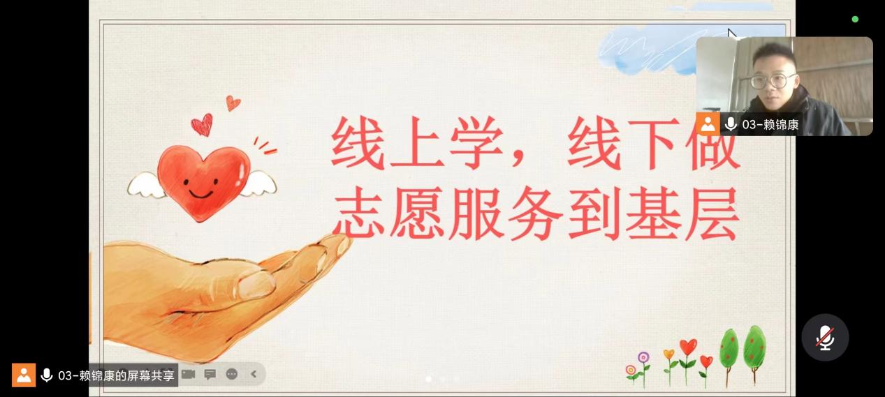 作為電力與智能制造學院的一名教師黨員賴錦康,于2024年1月27日,通過線上會議方式在23級汽車系學生中開展“線上學,線下做,志愿服務到基層”假期活動總動員,要求同學們時刻學習新思想,對榜樣8和志愿服務精神進行學習,引導同學們假期到社區(qū)基礎參加志愿服務,奉獻社會,會議上同學們熱情高漲探討社區(qū)志愿服務的方式、途徑和意義,并表示“假期不歇腳,奉獻樹風范”參與到社區(qū)志愿服務中去。