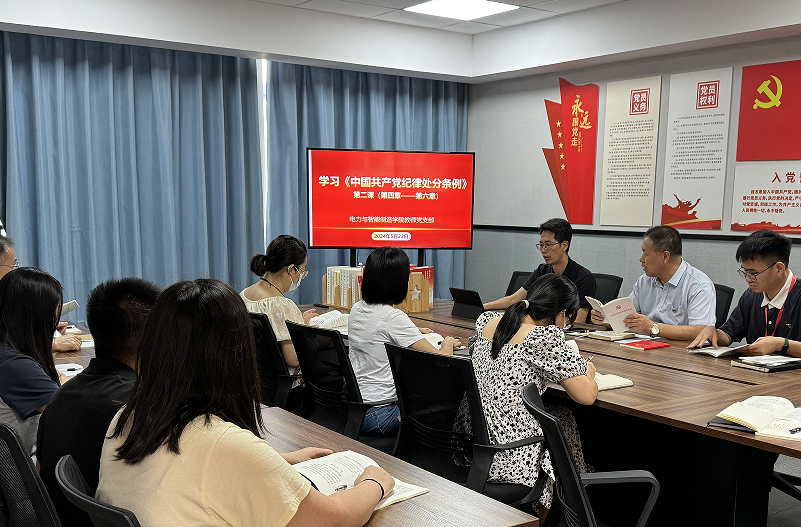 電力與智能制造學(xué)院黨總支書記褚玉峰參加了教師黨支部的黨紀(jì)學(xué)習(xí)教育,他帶領(lǐng)全體黨員學(xué)習(xí)《中國(guó)共產(chǎn)黨紀(jì)律處分條例》中第四章至第六章的內(nèi)容。