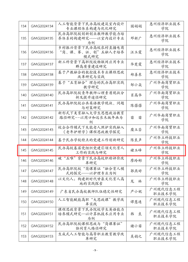 近日,廣東省民辦教育協(xié)會(huì)公布了《2024年度民辦高校科研課題立項(xiàng)結(jié)果的通知》,我院申報(bào)的“民辦高?;鶎狱h組織以黨建引領(lǐng)文化育人工作的實(shí)踐與研究”項(xiàng)目成功立項(xiàng)。