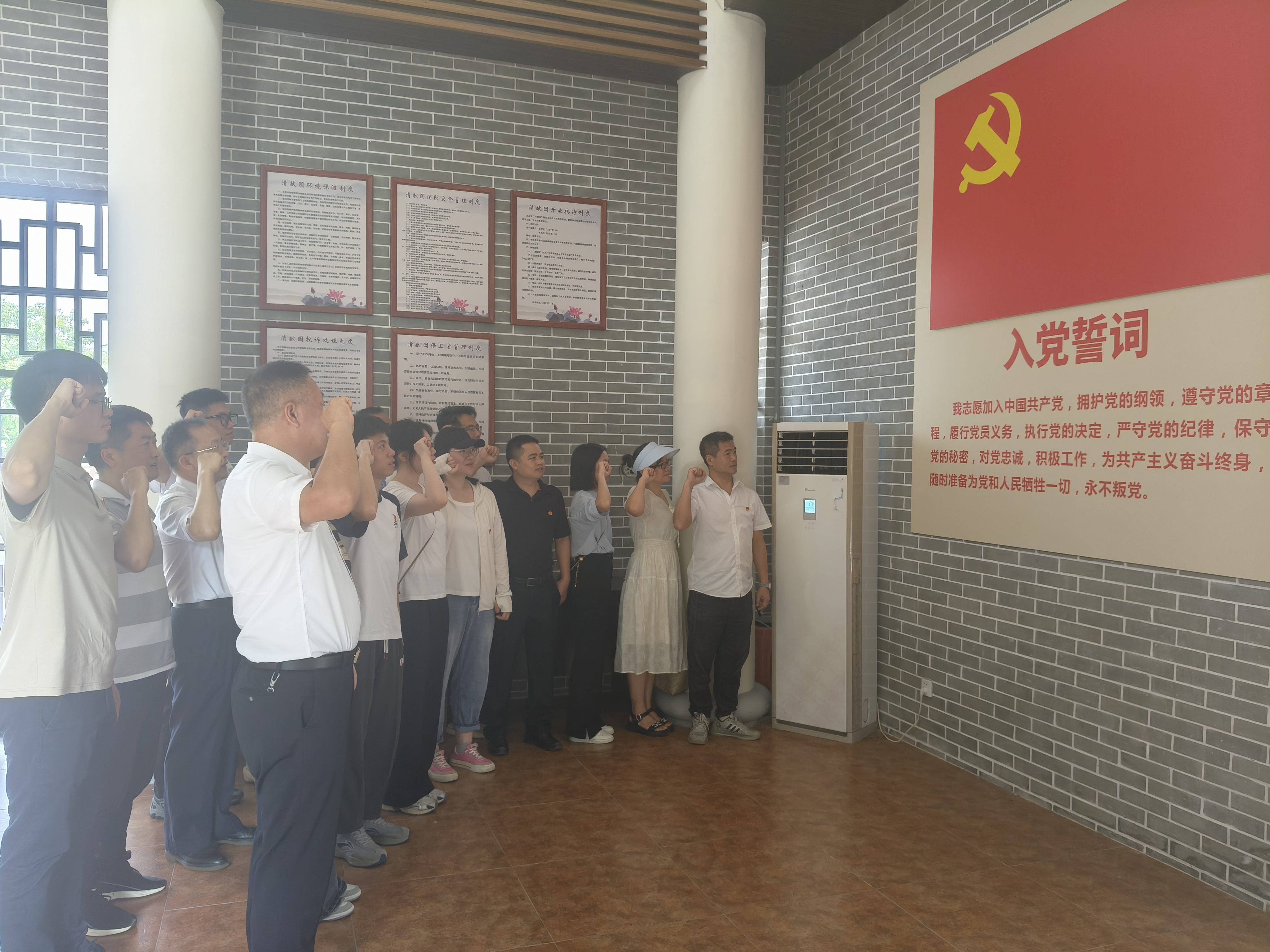 “清獻園”的大廳里,全體黨員面向黨旗重溫了入黨誓詞,由學院黨總支書記褚玉峰領誓。