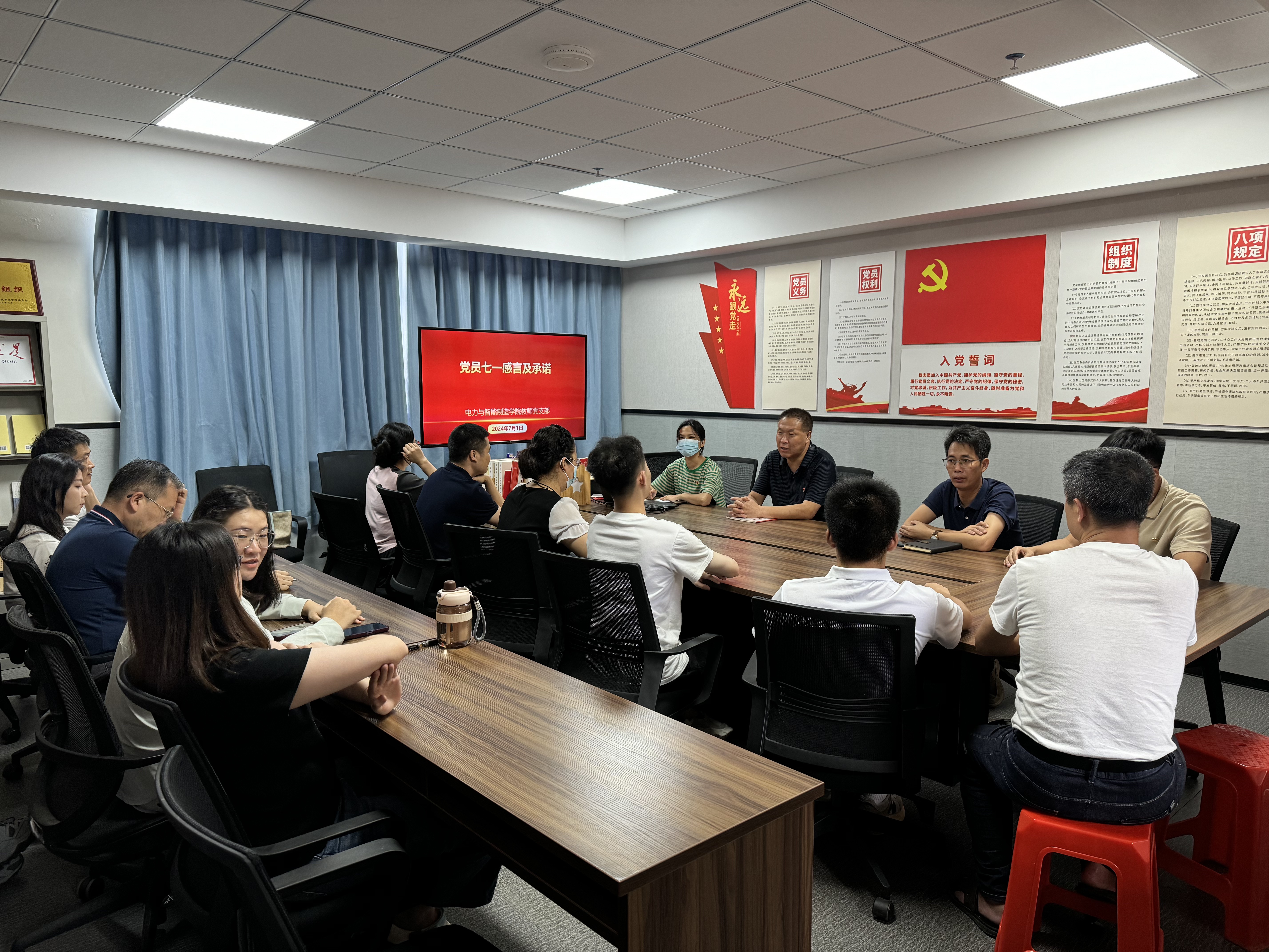2024年7月1日,是中國共產(chǎn)黨建黨103周年,在這個舉國歡慶的日子,電力與智能制造學院黨總支在西1-514B會議室開展了黨員“七一”感言和承諾主題黨日活動。學院全體黨員參加了活動,會議由學院黨總支書記褚玉峰主持。