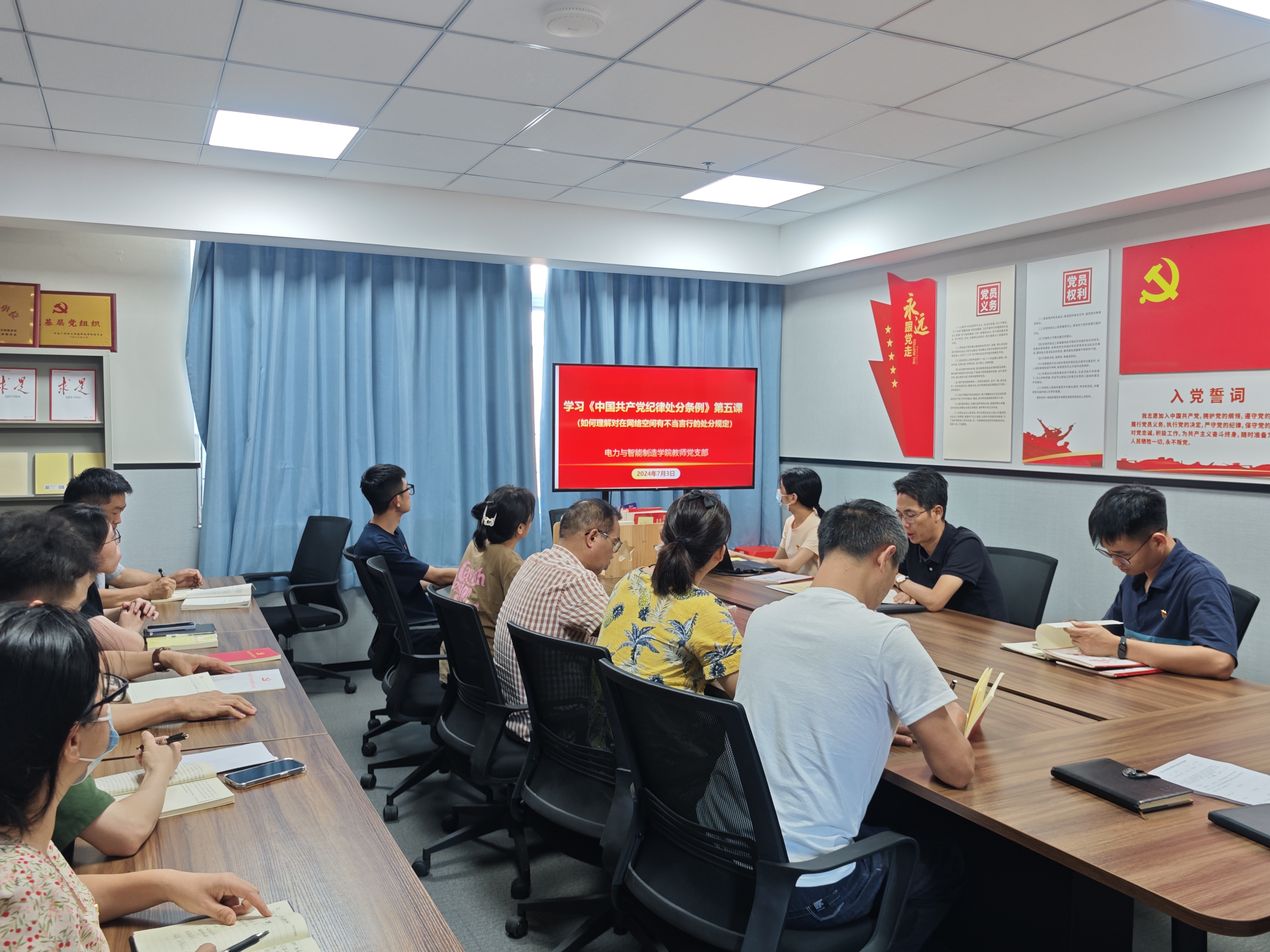 按照電力與智能制造學院黨總支《黨紀學習教育學習計劃》的安排部署,7月3日下午在西一樓514B黨員活動室,學院教師黨支部組織學習《中國共產(chǎn)黨紀律處分條例》第五節(jié)課,教師黨支部全體黨員參加了會議,會議由教師黨支部書記孫令真主持。