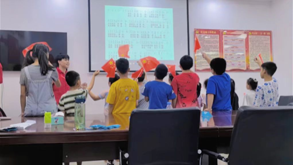 在課堂上,志愿者們帶著小朋友一同觀看愛國主題電影,以光影傳承紅色基因。電影中的英雄事跡深深觸動了小朋友的心靈,激發(fā)了他們對祖國的熱愛與敬仰;這不僅是一次知識的傳遞,更是情感的共鳴與責(zé)任的接力。