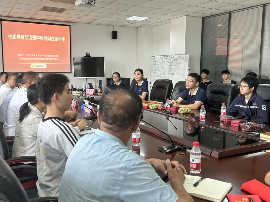 學院教師黨支部與北汽(廣州)汽車有限公司綜合管理黨支部是黨建結對共建單位。在中秋佳節(jié)到來之際,9月13日上午,學院教師黨支部書記孫令真帶領學院沒有課的8位黨員教師,到北汽(廣州)汽車有限公司進行黨建交流學習和中秋慰問在企學生。學院黨總支書記褚玉峰,北汽(廣州)汽車有限公司綜合管理黨支部副書記黃建安、人力運營經(jīng)理李婷婷、人事員陳晶及我校在企學生代表參加了會議。