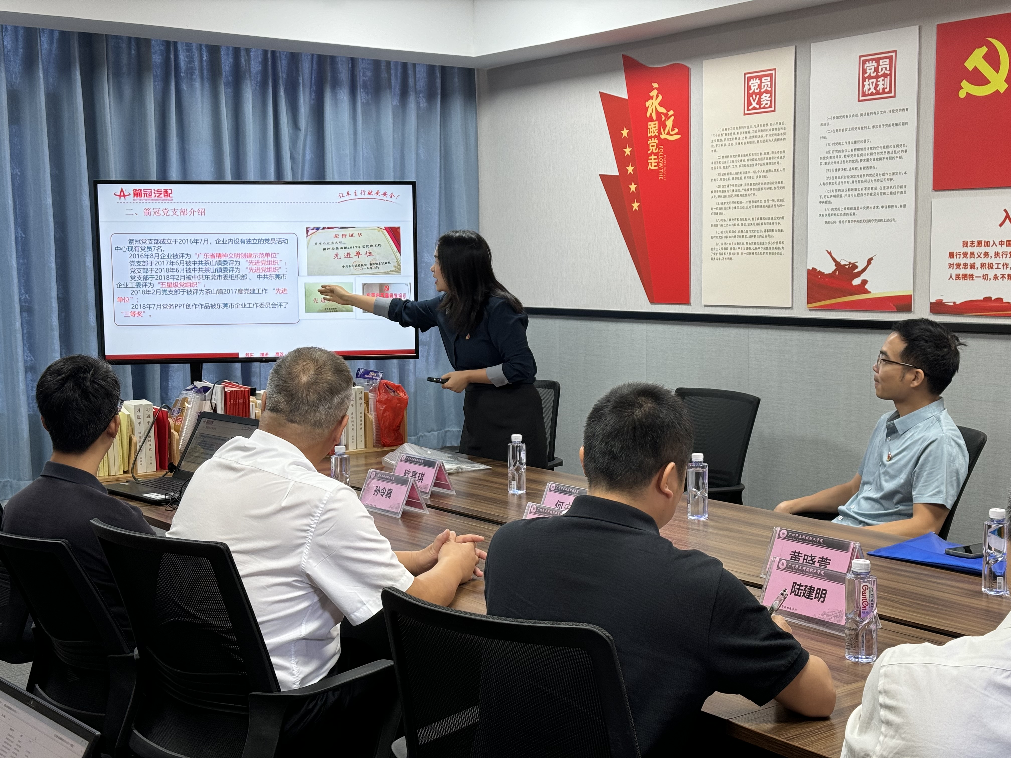 東莞市箭冠汽車配件制造有限公司與我院教師黨支部共建單位,應我院邀請,10月25日東莞市箭冠汽車配件制造有限公司人力資源總監(jiān)何安禮,黨支部書記歐嘉琪等人來到我校,開展黨建聯(lián)建交流,探索黨建引領校企合作、協(xié)同育人新路徑。學院黨總支書記褚玉峰,教師黨支部書記孫令真及全體黨員,參加了交流活動。