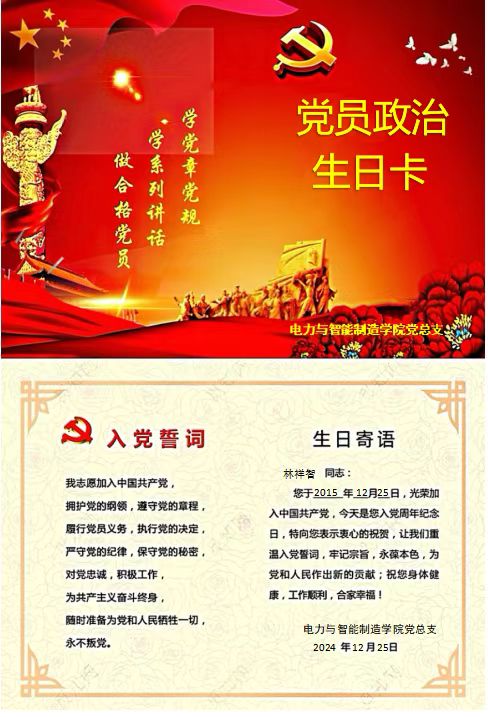 時(shí)光荏苒,如白駒過隙,在忙碌與奮進(jìn)中,12月25日迎來了屬于自己的一個(gè)特殊日子——“政治生日”,作為電力與智能制造學(xué)院黨總支教師黨支部的一名教師黨員林祥智,在這特殊的時(shí)刻,不僅是對個(gè)人黨員政治生涯的一次回顧,更是黨性修養(yǎng)再度升華的重要契機(jī)。