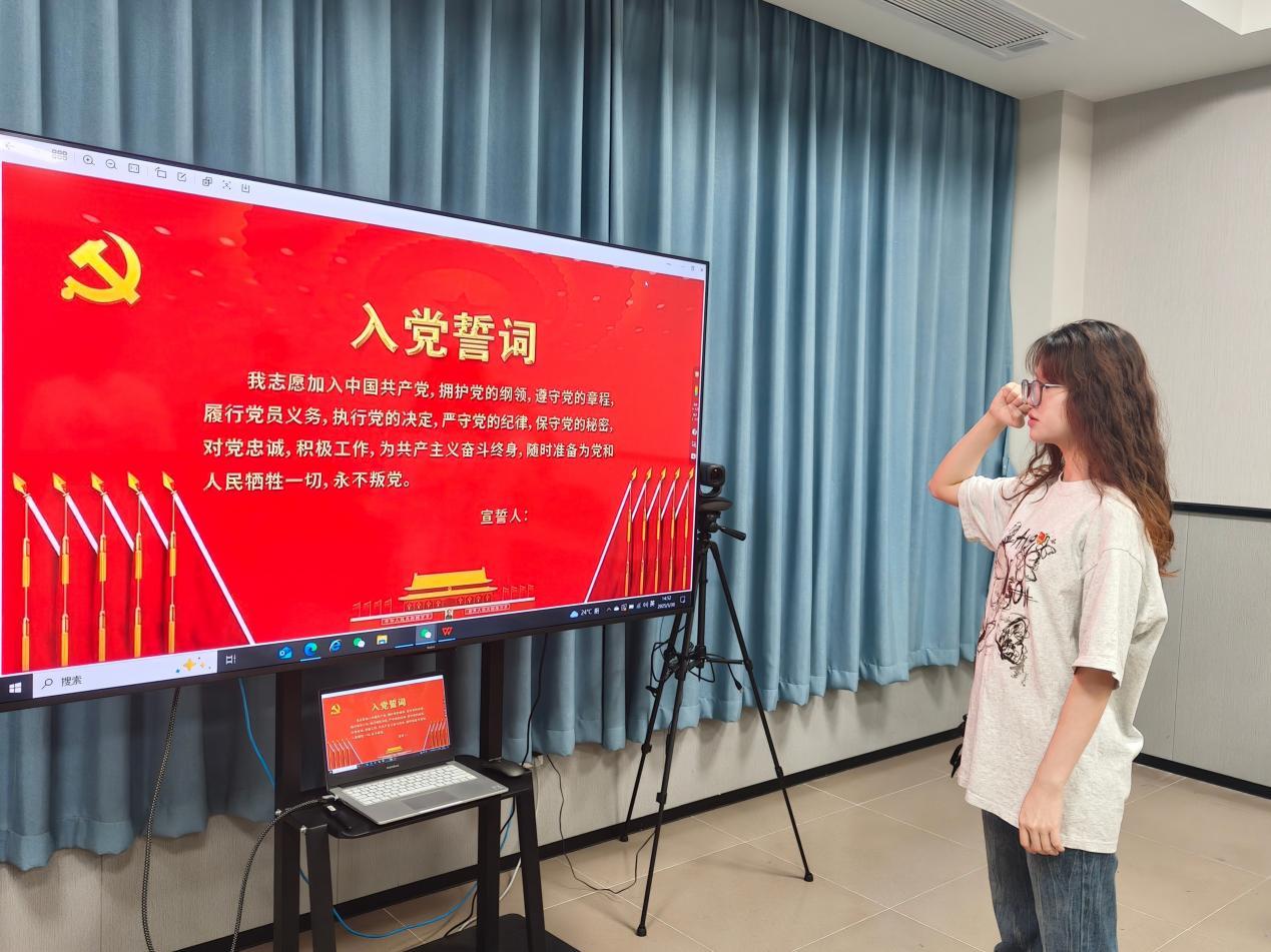 6月7日,電力與智能制造學(xué)院的黨員教師張愉玲收到了學(xué)院黨組織發(fā)的“政治生日”賀卡。一場莊重且意義非凡的政治生日活動在學(xué)校會議室舉行。活動在莊嚴(yán)的氛圍中拉開帷幕,張愉玲同志面向鮮艷的黨旗,舉起右拳,重溫入黨誓詞。每一個字都擲地有聲,每一句誓言都飽含著對黨的忠誠和為黨的事業(yè)奮斗終身的決心。這不僅是對入黨初心的重溫,更是對未來行動的承諾,激勵著黨員們時刻以高標(biāo)準(zhǔn)嚴(yán)格要求自己,在工作和生活中發(fā)揮先鋒模范作用。