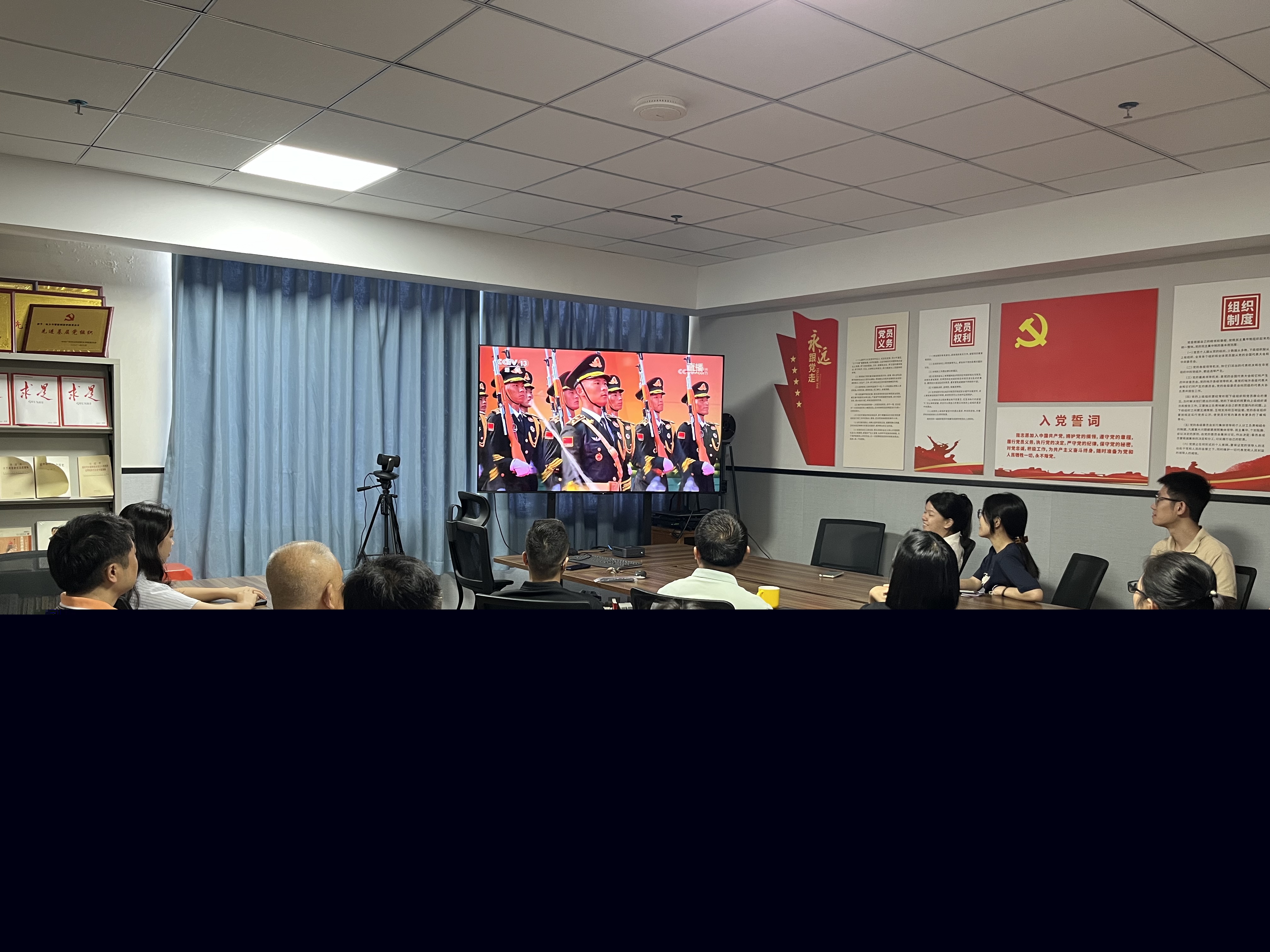 9月3日,學(xué)院教師黨支部組織沒有課黨員、教師在西1-514會議室集中收看“紀念中國人民抗日戰(zhàn)爭暨世界反法西斯戰(zhàn)爭勝利80周年大會”直播。