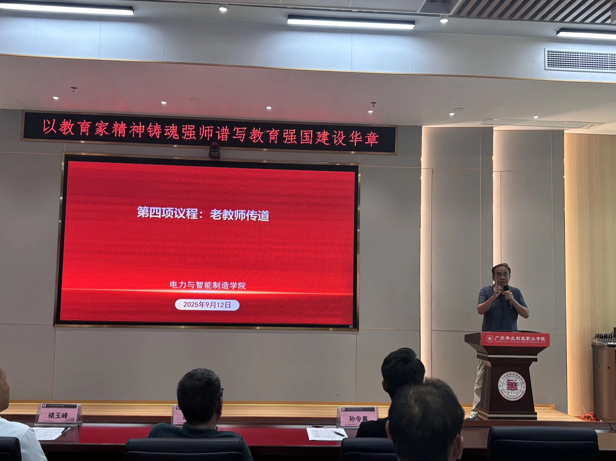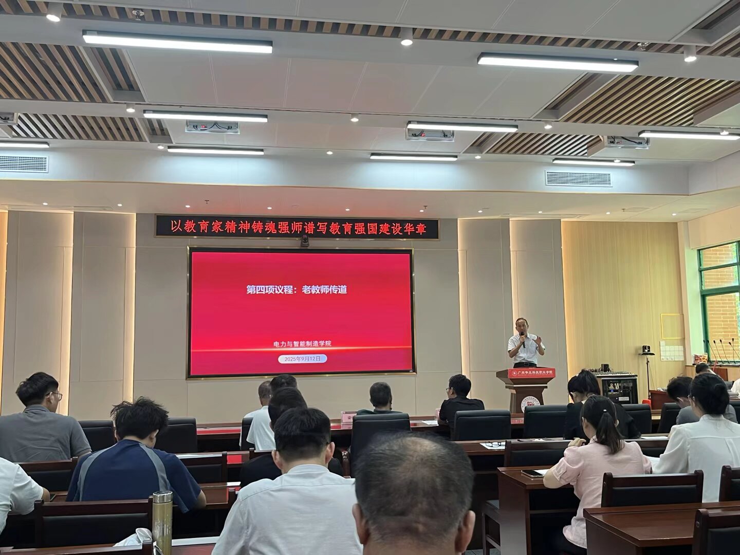 為了大力弘揚(yáng)教育家精神,譜寫教育強(qiáng)國建設(shè)華章,9月12日下午在圖書館104會議室,電力與智能制造學(xué)院開展了第三屆“師道?傳承”活動,活動由學(xué)院黨總支書記褚玉峰教授主持。