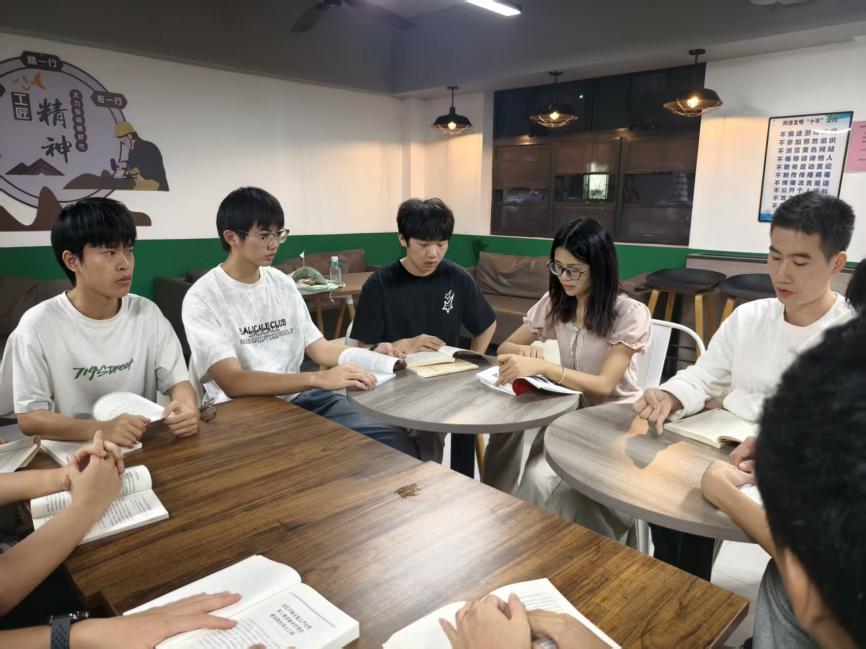 2025年11月06日晚,黨員羅熾老師在G2樓的“一站式”學生社區(qū)組織開展“讀書分享”,引領學生在紅色經(jīng)典中汲取奮進的力量。