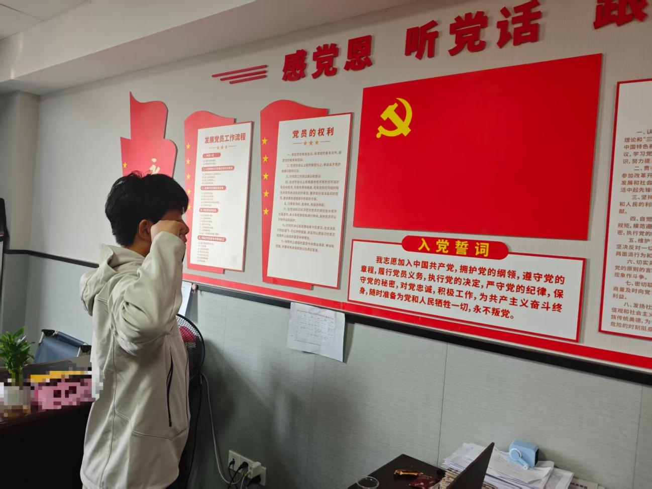 我在“政治生日”這天重溫了入黨誓詞,在鮮紅的中國共產(chǎn)黨黨旗前,我佩戴黨徽,舉起右拳,宣誓“我志愿加入中國共產(chǎn)黨,擁護黨的綱領(lǐng),遵守黨的章程……”鏗鏘有力的誓言回蕩在活動室的每個角落,既是對初心的回望,也是對信仰的淬煉。在重溫誓詞的過程中,再次感受入黨時的赤誠與激昂,進一步堅定了為共產(chǎn)主義事業(yè)奮斗終身的信念。