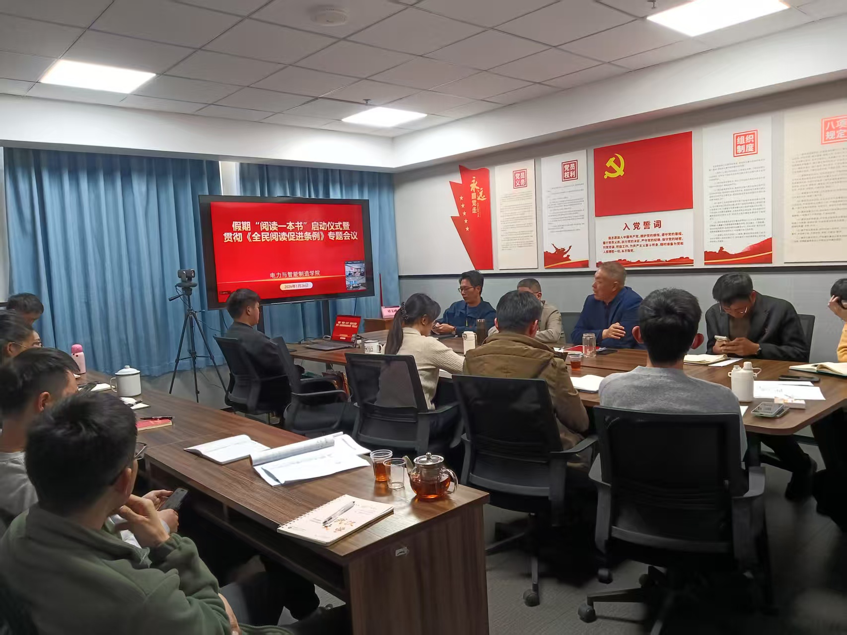 1月26日,臨近放假,電力與智能制造學(xué)院在西1-514會(huì)議室舉行“假期閱讀一本書(shū)”活動(dòng)啟動(dòng)儀式,學(xué)院廣州校區(qū)的全體教師參加了會(huì)議,云浮校區(qū)的教師通過(guò)連線(xiàn)方式也參加了會(huì)議。