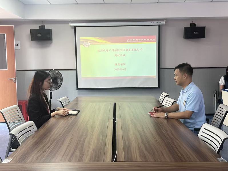 2025年6月25日,廣州振聰電子商務(wù)有限公司人事主管到訪廣州華立科技職業(yè)學(xué)院健康學(xué)院,與健康學(xué)院劉偉鑫副院長(zhǎng)就雙方已簽署的就業(yè)育人項(xiàng)目實(shí)施情況展開(kāi)深入交流,共謀項(xiàng)目?jī)?yōu)化與深化合作路徑。