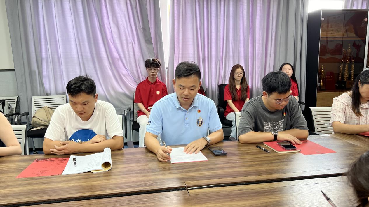 2025年10月16日中午12時(shí)30分,廣州華立科技職業(yè)學(xué)院健康學(xué)院直屬黨支部在西二教學(xué)樓六樓會(huì)議室隆重召開預(yù)備黨員轉(zhuǎn)正通表大會(huì)。本次大會(huì)主要議題為討論并表決廖煒鋒同志由中共預(yù)備黨員轉(zhuǎn)為正式黨員事宜。大會(huì)由黨建小組成員鐘夢嫻同志主持,健康學(xué)院直屬黨支部書記劉偉鑫、學(xué)管主任唐青、組織委員冼嘉祺、宣傳委員肖著勇等領(lǐng)導(dǎo)老師,以及支部全體教師黨員、學(xué)生黨員共同與會(huì)。