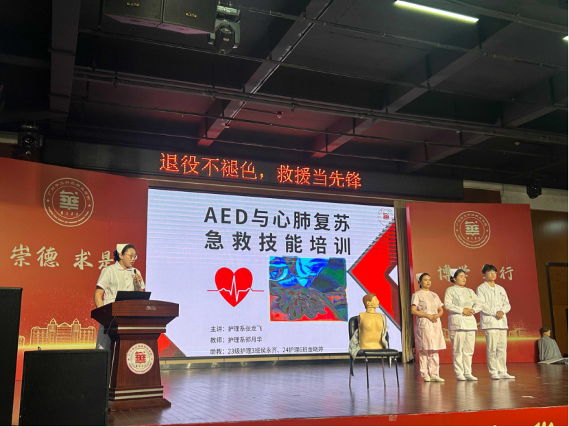 隨后,健康學(xué)院護(hù)理系教師張龍飛圍繞“認(rèn)識(shí)心臟驟停與‘黃金四分鐘’”這一主題,展開(kāi)了系統(tǒng)而全面的講解。張老師結(jié)合生動(dòng)的實(shí)際案例,詳細(xì)剖析了心臟驟停的識(shí)別方法、應(yīng)急反應(yīng)系統(tǒng)的啟動(dòng)流程以及心肺復(fù)蘇(CPR)與自動(dòng)體外除顫器(AED)的正確使用方法。通過(guò)深入淺出的講解,讓在場(chǎng)師生對(duì)急救知識(shí)有了更為深刻、全面的認(rèn)識(shí)。