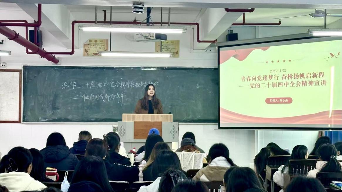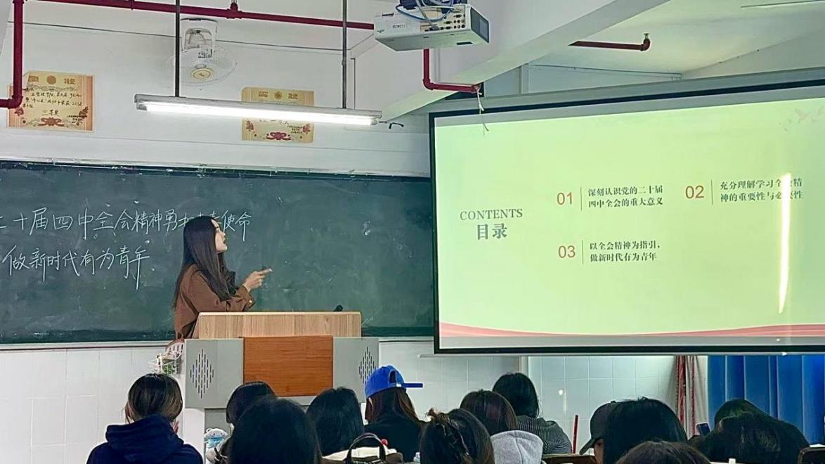 陳老師生動闡釋道:“黨的二十屆四中全會為國家發(fā)展擘畫了宏偉藍(lán)圖,更與我們每位青年學(xué)子的成長成才緊密相連?!彼貜?qiáng)調(diào),2025年是“十四五“ 收官與“十五五”謀劃的關(guān)鍵之年,深入學(xué)習(xí)全會精神,是青年學(xué)子認(rèn)清時代方位、找準(zhǔn)人生航向的 “必修課”,能幫助大家在專業(yè)學(xué)習(xí)與人生規(guī)劃中明確方向、積蓄奮進(jìn)力量。