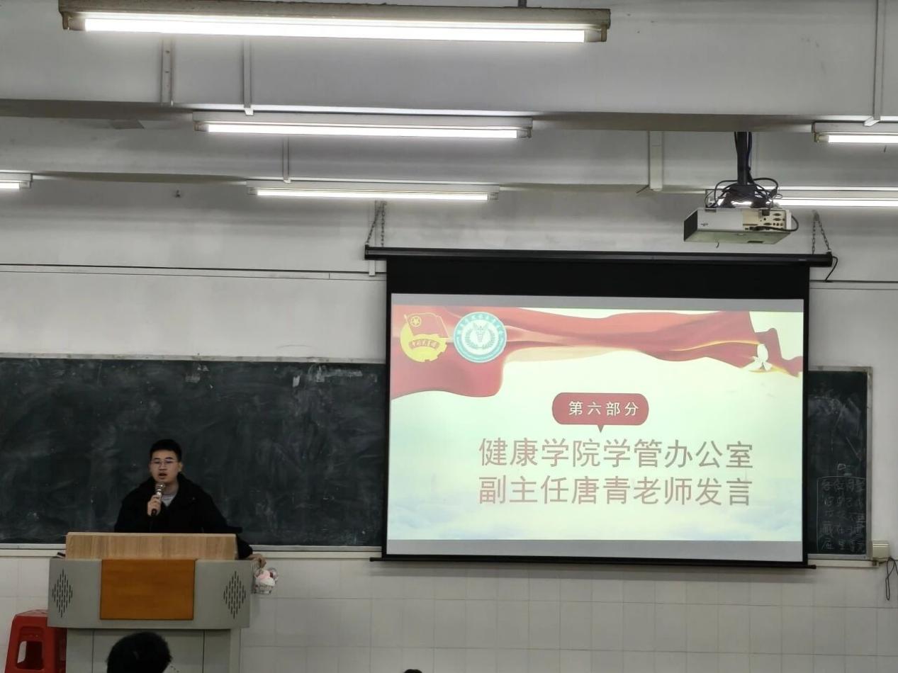 最后,健康學院學管副主任唐青老師對本次大會進行總結(jié)。他充分肯定團委學生會本學期在多領(lǐng)域取得的工作成效,向辛勤付出的師生致以誠摯感謝。同時,他也指出組織在部門協(xié)同、責任意識、創(chuàng)新能力等方面存在的不足,并提出改革骨干培養(yǎng)機制、深化服務(wù)師生宗旨、加強校內(nèi)外聯(lián)動等具體要求,勉勵全體成員凝心聚力、再接再厲,為學院發(fā)展再建新功。
