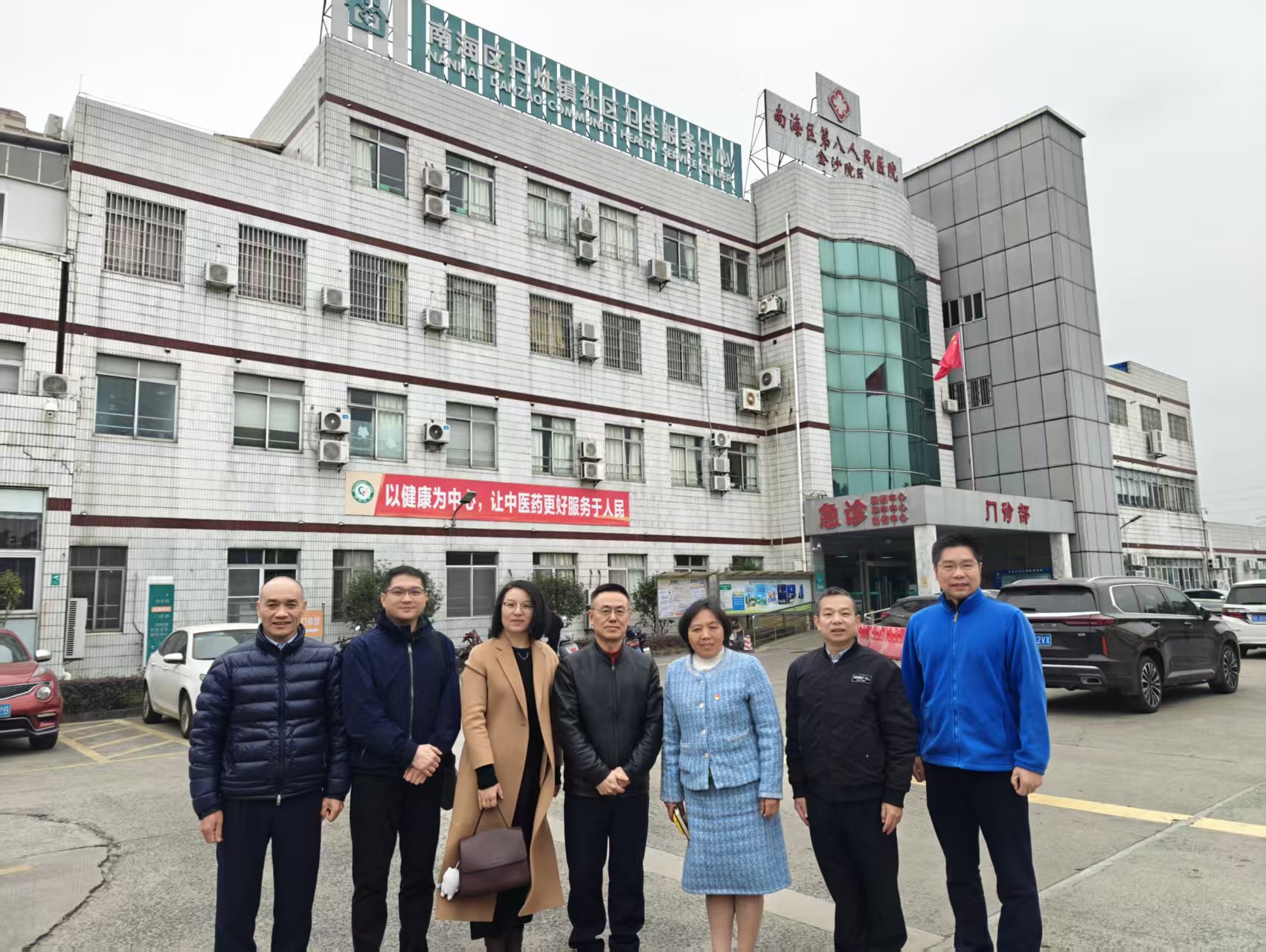 健康學(xué)院羅琴芳博士參觀兒童一體化門(mén)診,與丹灶社區(qū)衛(wèi)生服務(wù)中心何立華主任等負(fù)責(zé)人樓前合影