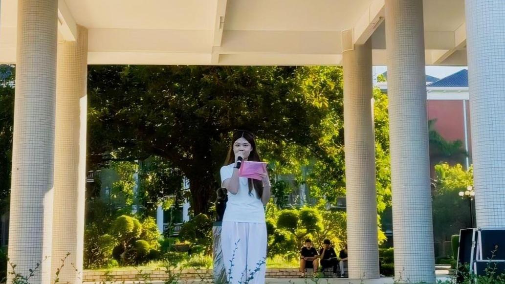 來自25計(jì)應(yīng)2班的新生代表林琮迪現(xiàn)場提議,新時(shí)代青年要銘記歷史,在課堂中扎實(shí)學(xué)知識(shí)、在生活中攜手共拼搏,將個(gè)人成長融入國家發(fā)展,以實(shí)干守護(hù)和平、用奮斗為民族復(fù)興貢獻(xiàn)力量。