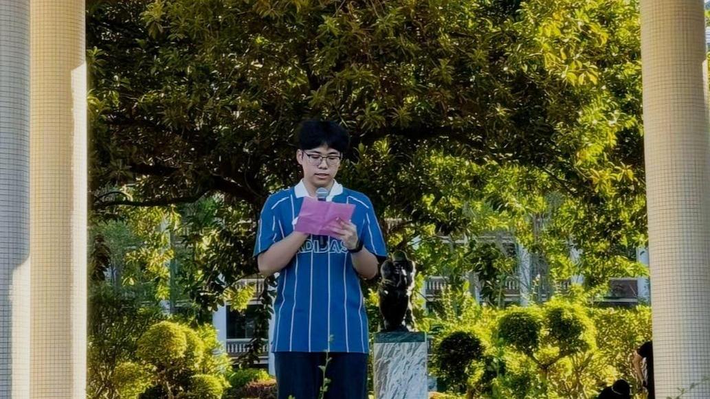 新生代表林琮迪同學(xué)進(jìn)行國旗下講話