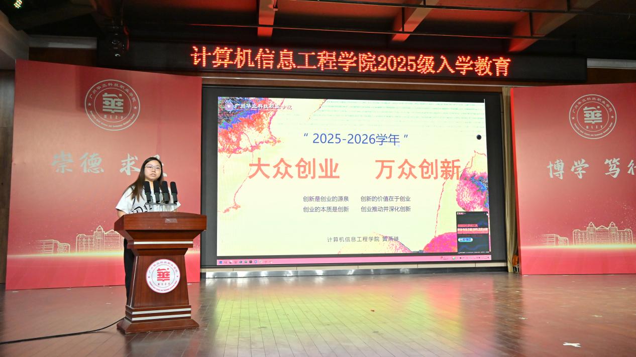 緊接著,黃燕琳進行創(chuàng)新創(chuàng)業(yè)宣講。她分享了學校在創(chuàng)新創(chuàng)業(yè)方面的政策支持、成功案例以及各類創(chuàng)新創(chuàng)業(yè)賽事,激發(fā)了新生們的創(chuàng)新思維與創(chuàng)業(yè)熱情,讓大家了解到在大學期間除了專業(yè)學習,還能通過創(chuàng)新創(chuàng)業(yè)拓寬發(fā)展道路。