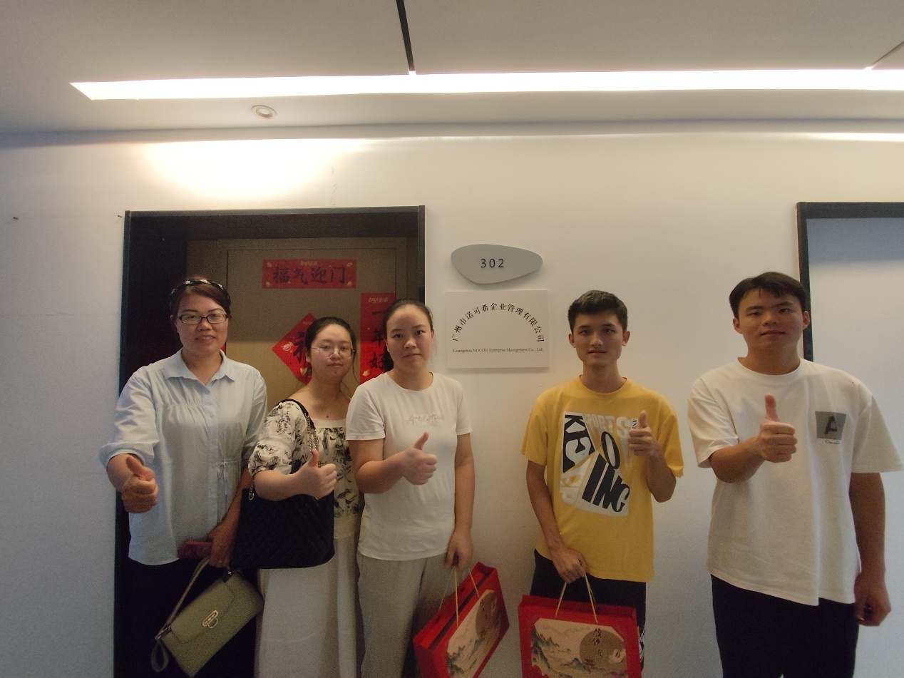 隨后,學院教師一行前往廣州市諾可希企業(yè)管理有限公司進行走訪。公司負責人劉曼女士介紹了學生的崗位實踐安排與表現(xiàn)。在與學生的座談中,老師們同樣給予了深切關懷與鼓勵。并代表學校向實踐學生分發(fā)了中秋慰問品。