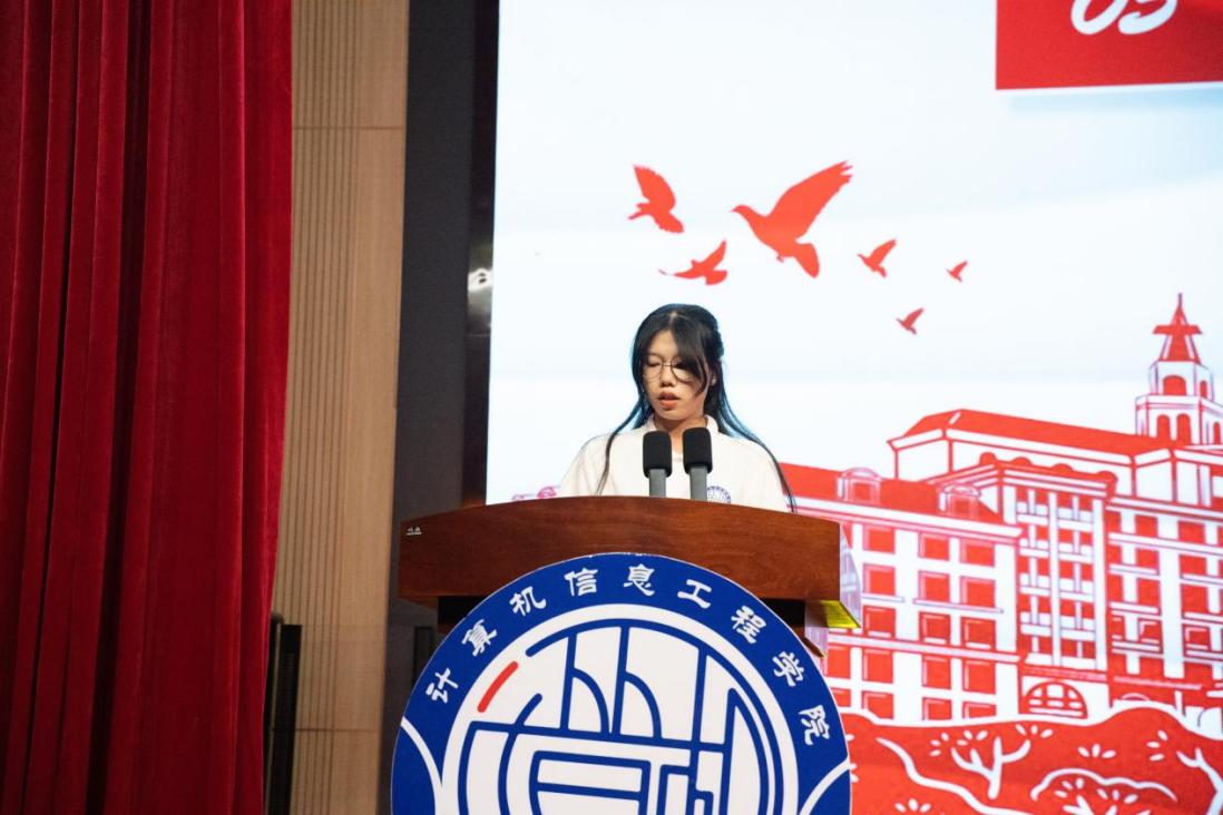 主席團(tuán)代表鄭燁曼同學(xué)對新成員的加入表示熱烈歡迎,鼓勵大家珍惜機(jī)會、勇于探索,同時感謝老成員的辛勤付出。她引用“長風(fēng)破浪會有時,直掛云帆濟(jì)滄海”,號召全體成員攜手共進(jìn),共創(chuàng)計(jì)算機(jī)信息工程學(xué)院更加燦爛的明天。
