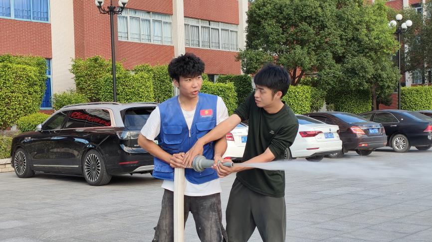 活動最后,利用消防水槍的講解和實(shí)操體驗(yàn),讓學(xué)生真切的感受消防水槍的使用同時也對消防安全演練場地地面進(jìn)行打掃,水槍也是消防中非常關(guān)鍵,也是非常有效的措施。