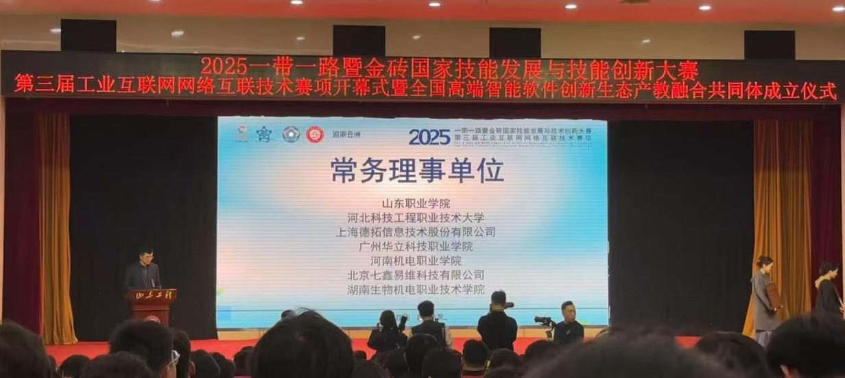 2025年11月7日-9日,2025年“一帶一路”暨金磚國家技能發(fā)展與技術(shù)創(chuàng)新大賽第三屆工業(yè)互聯(lián)網(wǎng)網(wǎng)絡(luò)互聯(lián)技術(shù)賽項(xiàng)全國總決賽在山東工程職業(yè)技術(shù)大學(xué)隆重舉行,吸引了來自全國81所院校的132支參賽隊(duì)伍同場競技。我校計(jì)算機(jī)信息工程學(xué)院閔小翠、王建華老師指導(dǎo)選派的兩支代表隊(duì)(1隊(duì):馮俊杰,劉俊浩、2隊(duì):彭依琳,魏淙正),在全國總決賽賽場上,歷經(jīng)四小時(shí)的激烈比拼,最終憑借扎實(shí)的專業(yè)知識(shí)、科學(xué)的團(tuán)隊(duì)協(xié)作,最終脫穎而出,榮獲全國總決賽二等獎(jiǎng)1項(xiàng)、三等獎(jiǎng)1項(xiàng),為學(xué)校贏得榮譽(yù)。我校榮獲“優(yōu)秀組織獎(jiǎng)”、兩位指導(dǎo)教師榮獲“優(yōu)秀指導(dǎo)教師”稱號(hào)。