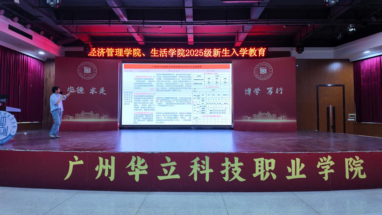 2025年9月5日上午,經(jīng)濟(jì)管理學(xué)院與生活學(xué)院在廣州華立科技職業(yè)學(xué)院圖書館8樓報告廳聯(lián)合舉辦了2025級新生創(chuàng)新創(chuàng)業(yè)教育宣講會。會議由學(xué)院創(chuàng)新創(chuàng)業(yè)競賽負(fù)責(zé)人洪耿彬老師主講。