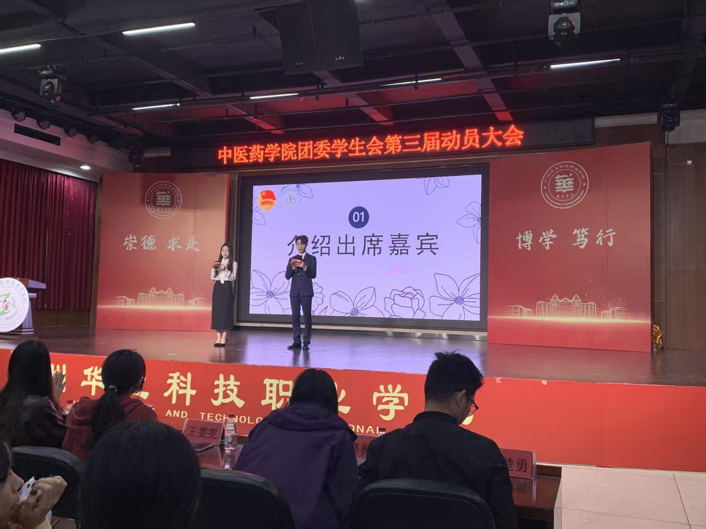 主持人以清晰而富有感染力的聲音,逐一介紹了蒞臨本次大會的嘉賓。出席本次大會的有:中醫(yī)藥學院直屬黨支部書記、副院長曾祥彪老師、中醫(yī)藥學院直屬黨支部組織委員鄭潔儀老師、中醫(yī)藥學院直屬黨支部宣傳委員曾玉梅老師、中醫(yī)藥學院團委書記謝梓婷老師、中醫(yī)藥學院易班指導(dǎo)老師王雯雯老師,以及中醫(yī)藥學院全體輔導(dǎo)員老師們,強調(diào)了學院領(lǐng)導(dǎo)、老師對學生組織建設(shè)與發(fā)展的高度重視與支持。