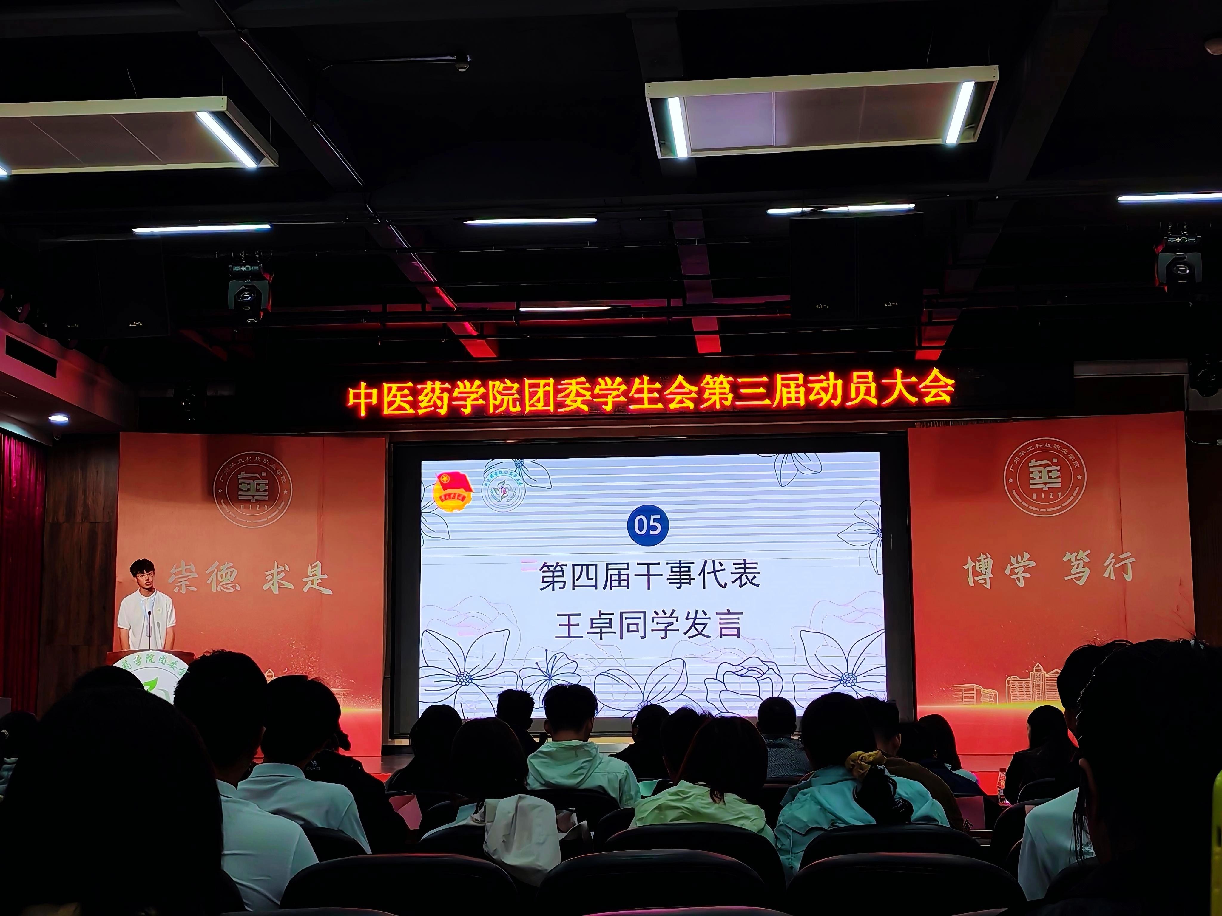 中醫(yī)藥學院團委學生會第四屆干事代表王卓同學進行發(fā)言