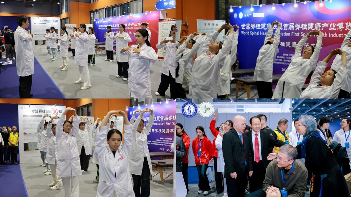 下午14:00,首屆“國際脊柱健康手法公開賽”在脊柱健康體驗區(qū)隆重舉辦。我院率先登場表演“一指通”脊柱保健操,同學們動作整齊,動息相合,現(xiàn)場響起熱烈的掌聲。隨后來自國內(nèi)外的數(shù)十名選手輪番上場展示脊柱治療的獨門秘技,我院師生有幸現(xiàn)場觀摩學習了當今多個流派的脊柱治療技術。