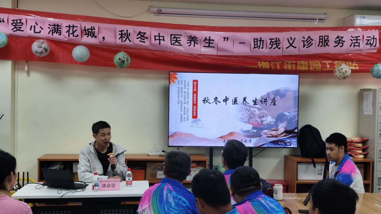活動(dòng)伊始,學(xué)院潘菽弢博士以“秋冬中醫(yī)養(yǎng)生”為主題開(kāi)展宣講,結(jié)合季節(jié)特點(diǎn)與殘障群體的身體狀況,向?qū)W員講解公共衛(wèi)生健康知識(shí),增強(qiáng)學(xué)員的健康意識(shí),還通過(guò)現(xiàn)場(chǎng)問(wèn)答與學(xué)員互動(dòng),幫助大家樹(shù)立科學(xué)的健康觀(guān)念。