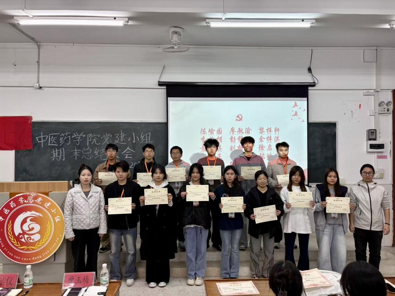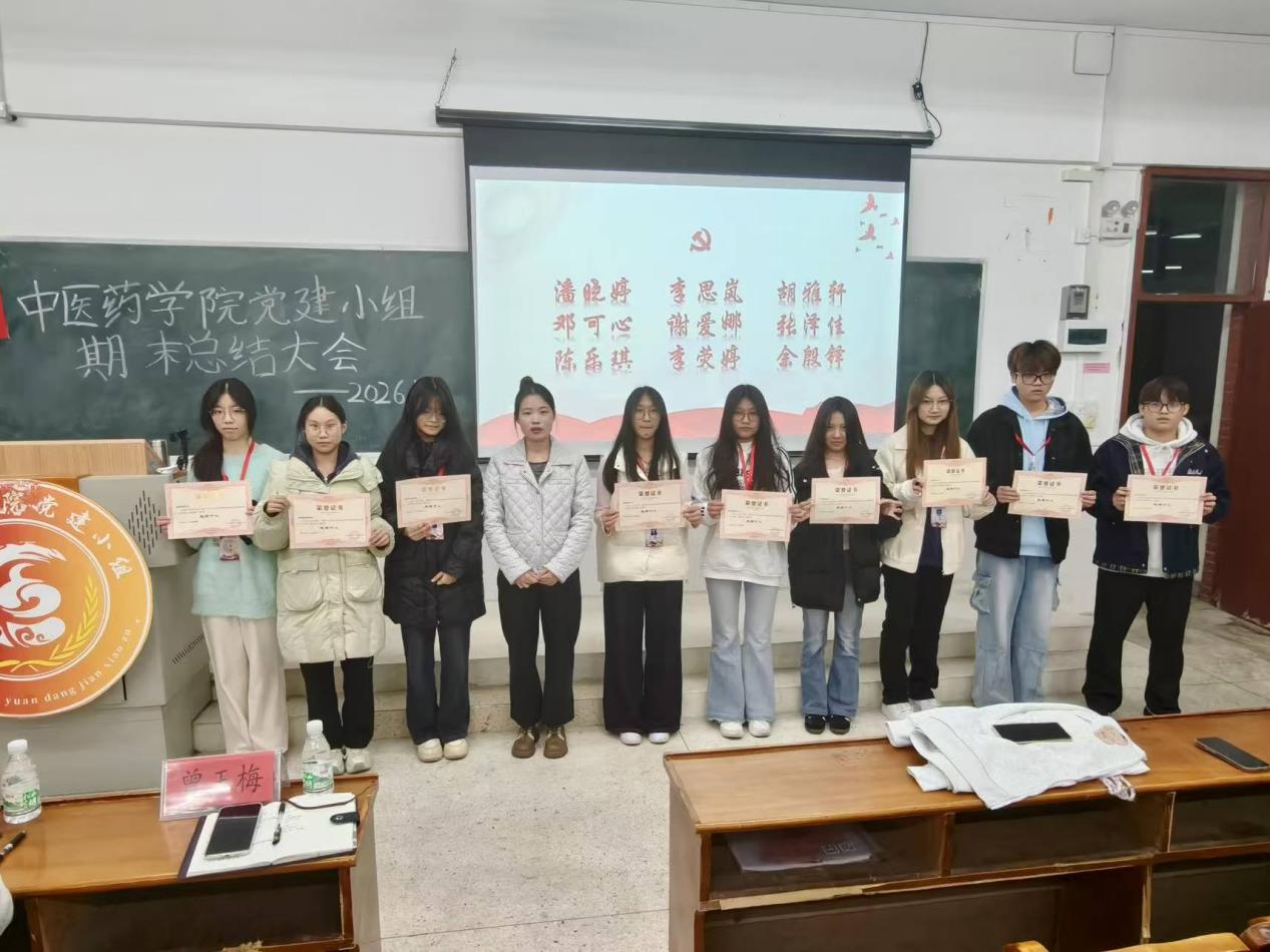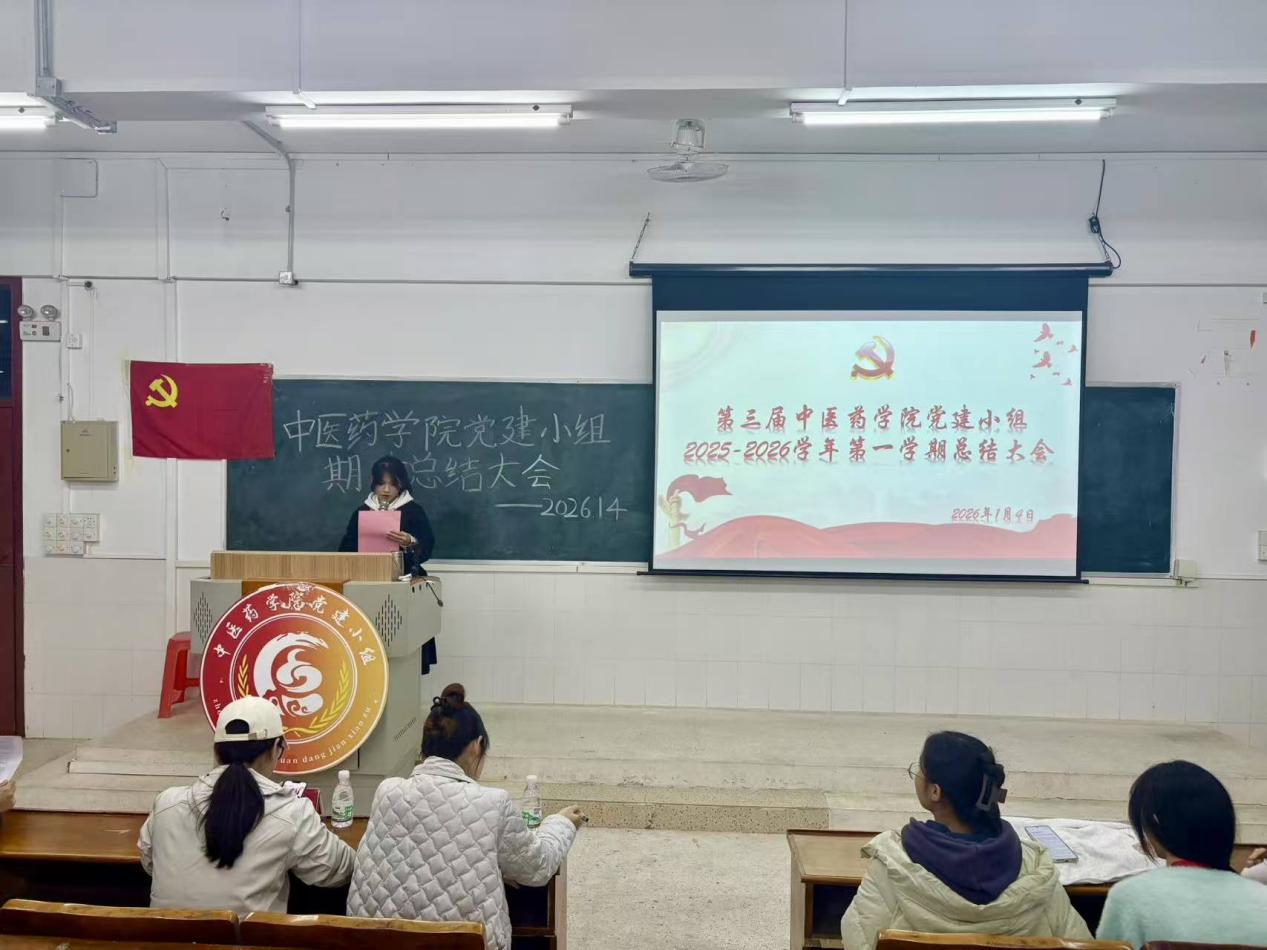 2026年1月4日晚,中醫(yī)藥學(xué)院黨建小組在圖書館303教室召開2025-2026學(xué)年第一學(xué)期工作總結(jié)大會(huì),全面回顧了過(guò)去一學(xué)期黨建小組的工作成果與成長(zhǎng)歷程,精心謀劃下一學(xué)期的發(fā)展。指導(dǎo)老師鄭潔儀、曾玉梅及全體黨建小組成員齊聚一堂,共同總結(jié)過(guò)往、表彰先進(jìn)、展望未來(lái)。