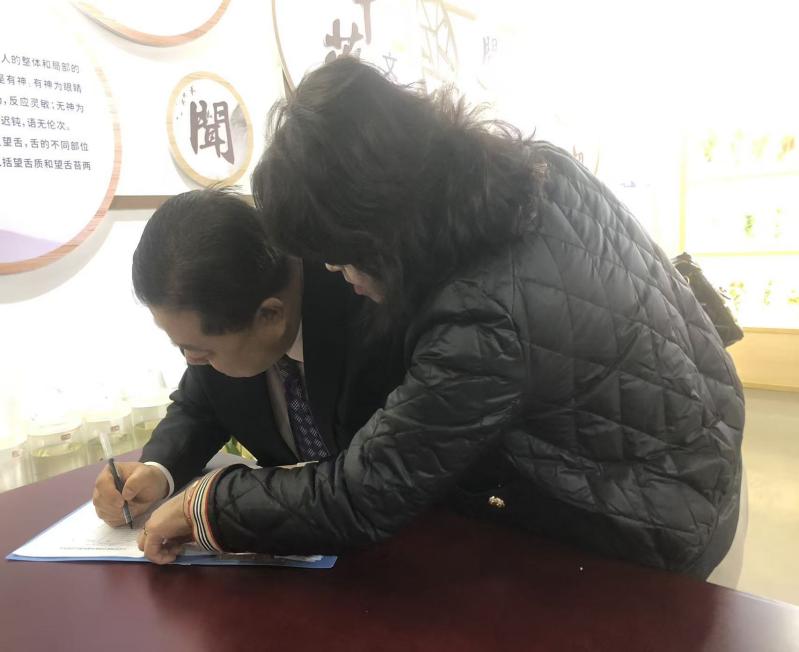 圖2 韓國(guó)新慶州大學(xué)代表團(tuán)參觀(guān)中藥標(biāo)本館簽名