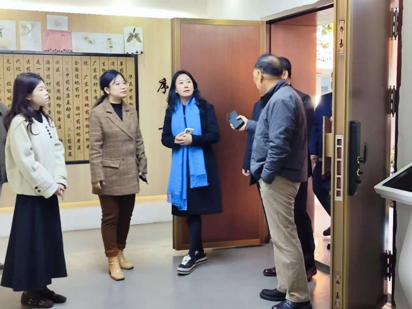 我校中藥標(biāo)本館作為中醫(yī)藥文化傳播的重要載體,館藏涵蓋臘葉標(biāo)本、浸制標(biāo)本、生藥標(biāo)本等千余件,系統(tǒng)展示了中醫(yī)藥發(fā)展脈絡(luò)與道地藥材特色。代表團(tuán)在中醫(yī)藥學(xué)院實(shí)訓(xùn)室主任的引導(dǎo)下,詳細(xì)了解了真?zhèn)舞b別方法、廣東省道地藥材沙盤(pán)分布并體驗(yàn)了四維影像等現(xiàn)代化展示手段。